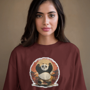 Women Maroon Kung Fu Panda Oversized T-Shirt